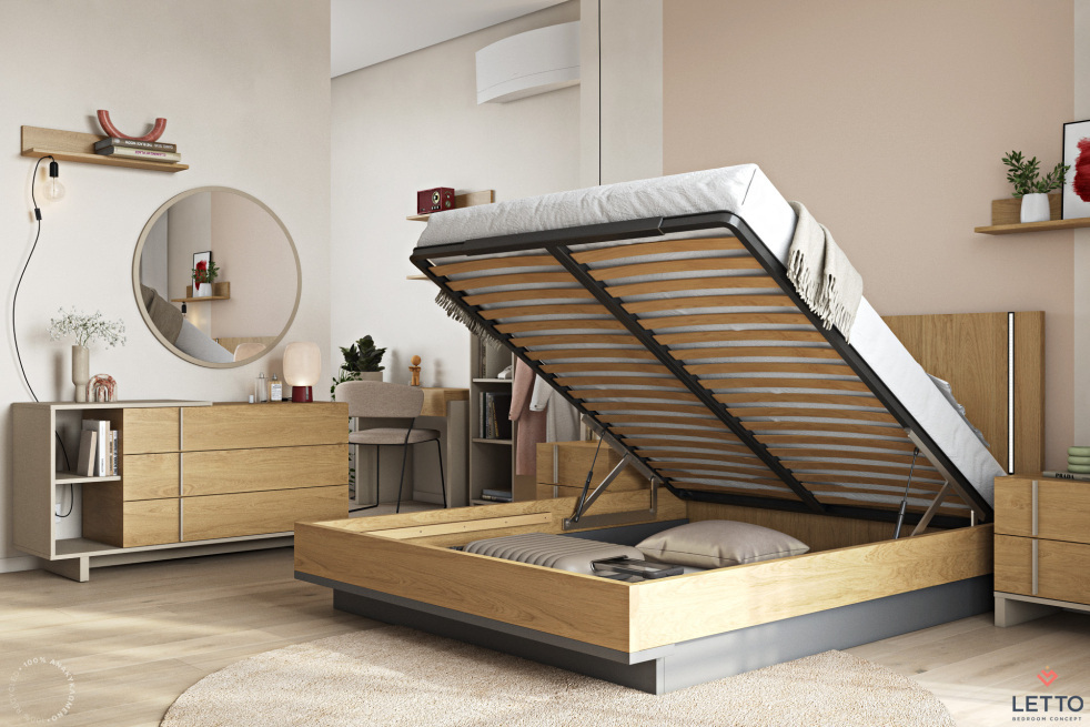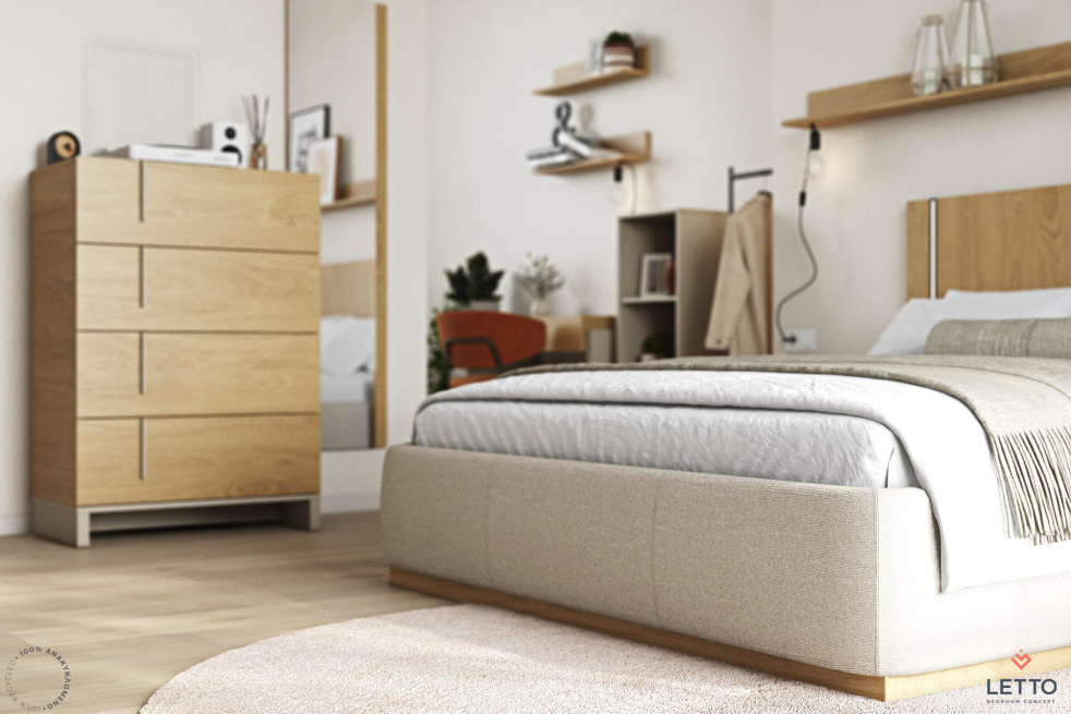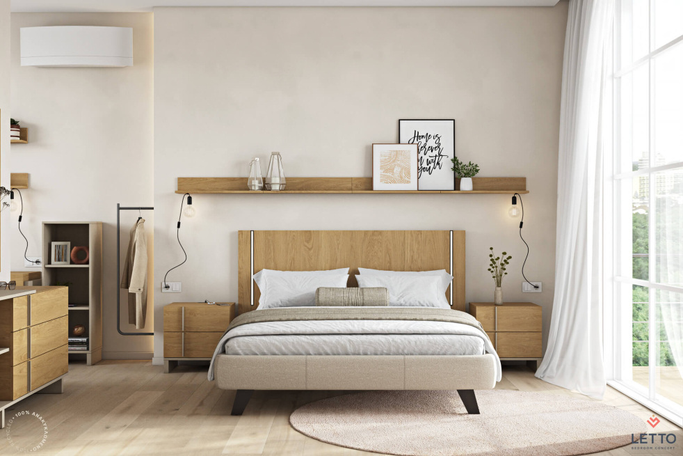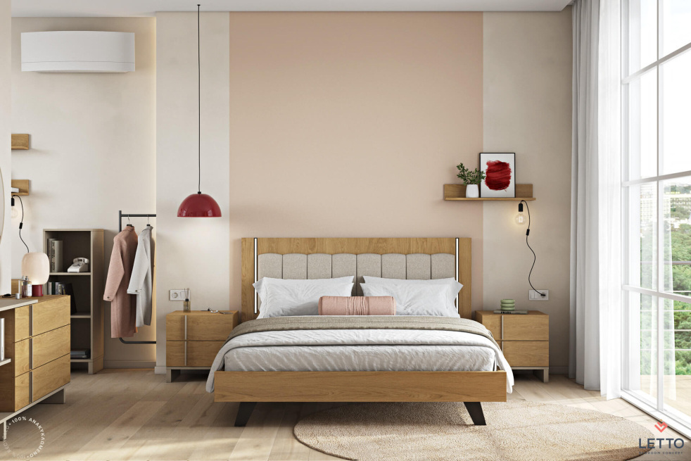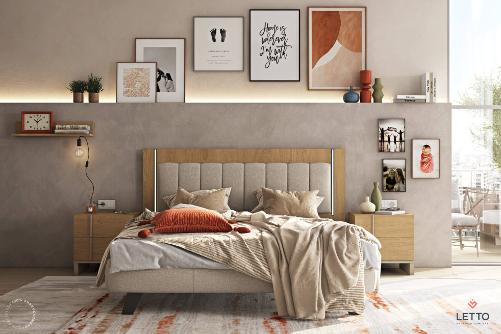 Κρεβατοκάμαρα MOD από βακελίτη και led φωτιστικά στο κεφαλάρι .